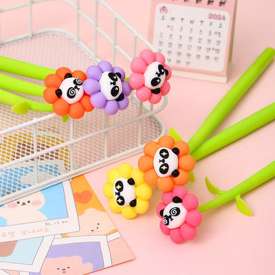 Plumas de flor de panda Plumas creativas de forma de bola de forma de rosa Negro líquido de 0,5 mm Tinta de gel Pluma de pelota para niñas Mujeres, artículos de decoración de la escuela de oficina