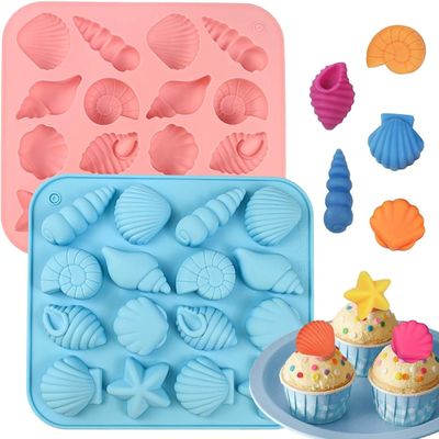 Molde de silicona de primera calidad para alimentos para hacer chocolate, jabón, velas, fondant, decoración de pasteles y gelatina con intrincados diseños de conchas marinas.