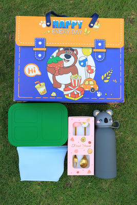 The silicone lunch box is collapsible for easy storage in bags or drawers.