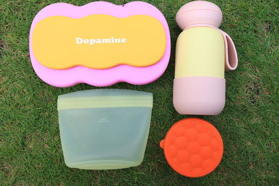Reusable silicone food bag offers flexible storage for dry or liquid items, ideal for travel or picnics.