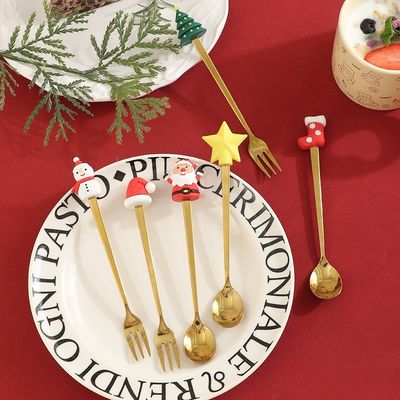 Cuchara y tenedor de Navidad de manija larga de silicona personalizado Silicona de calidad alimentaria + acero inoxidable 304 Cortines de dibujos animados navideños para niños y adultos
